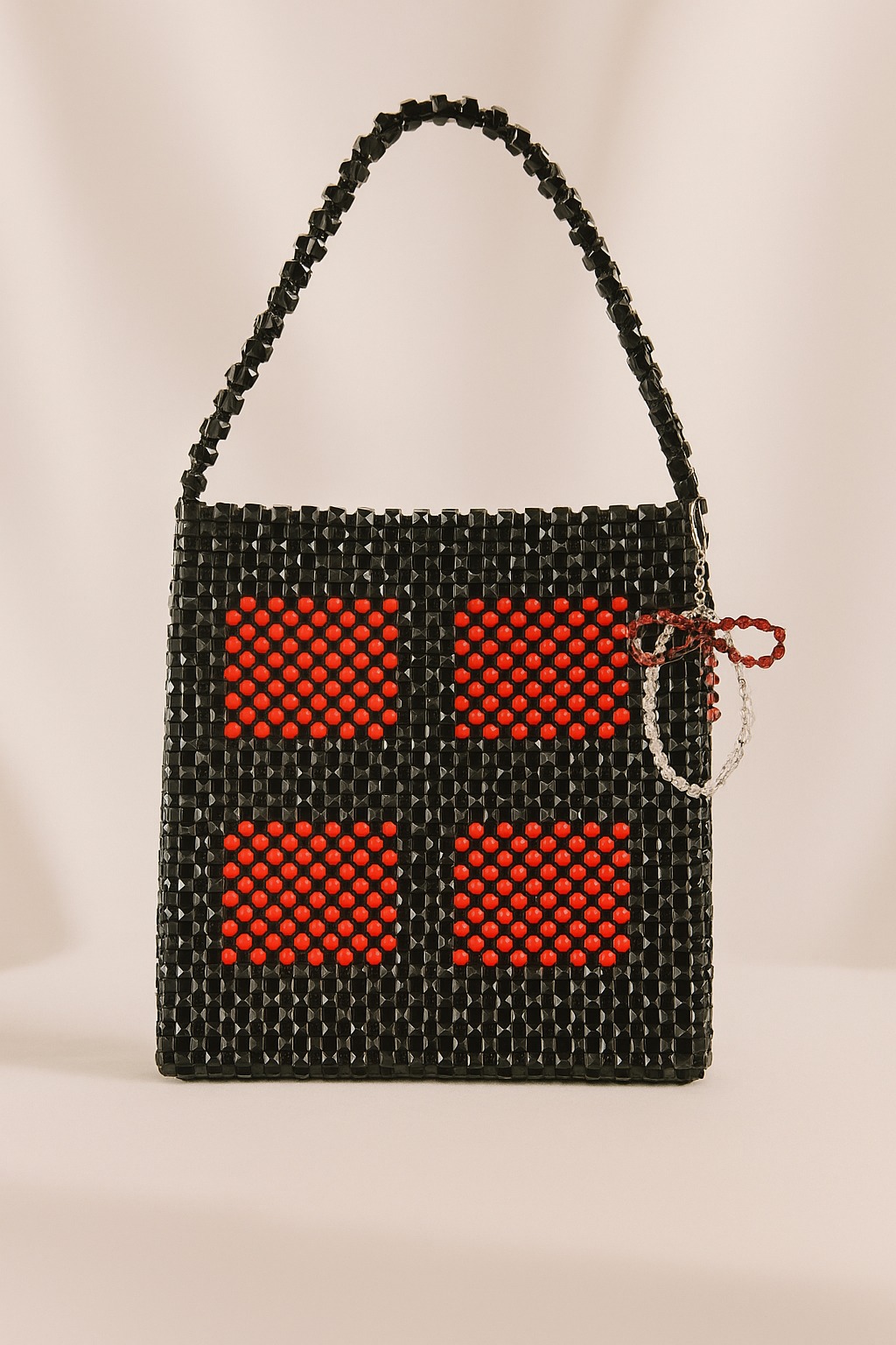 A Noire beaded tote bag is a chic and elegant accessory, characterized by its black beaded exterior—typically made from glass, wooden, or faux-pearl beads—hand‑woven into a structured silhouette that gleams subtly under light.